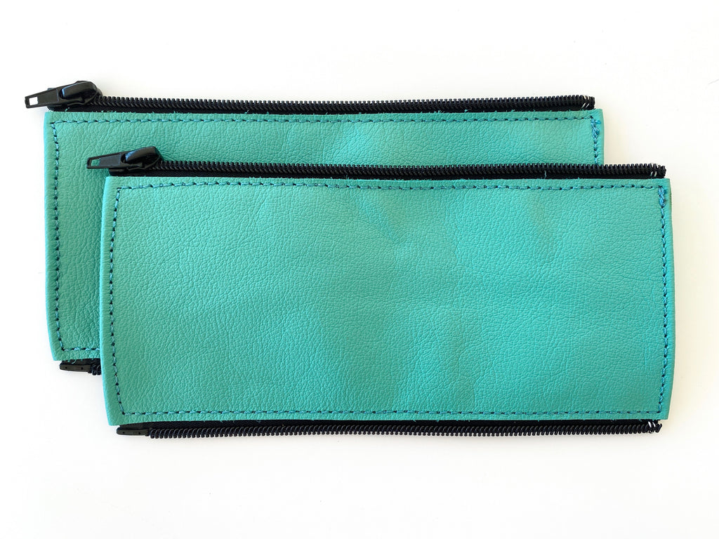- leather cover with black separating nylon coil zipper closure